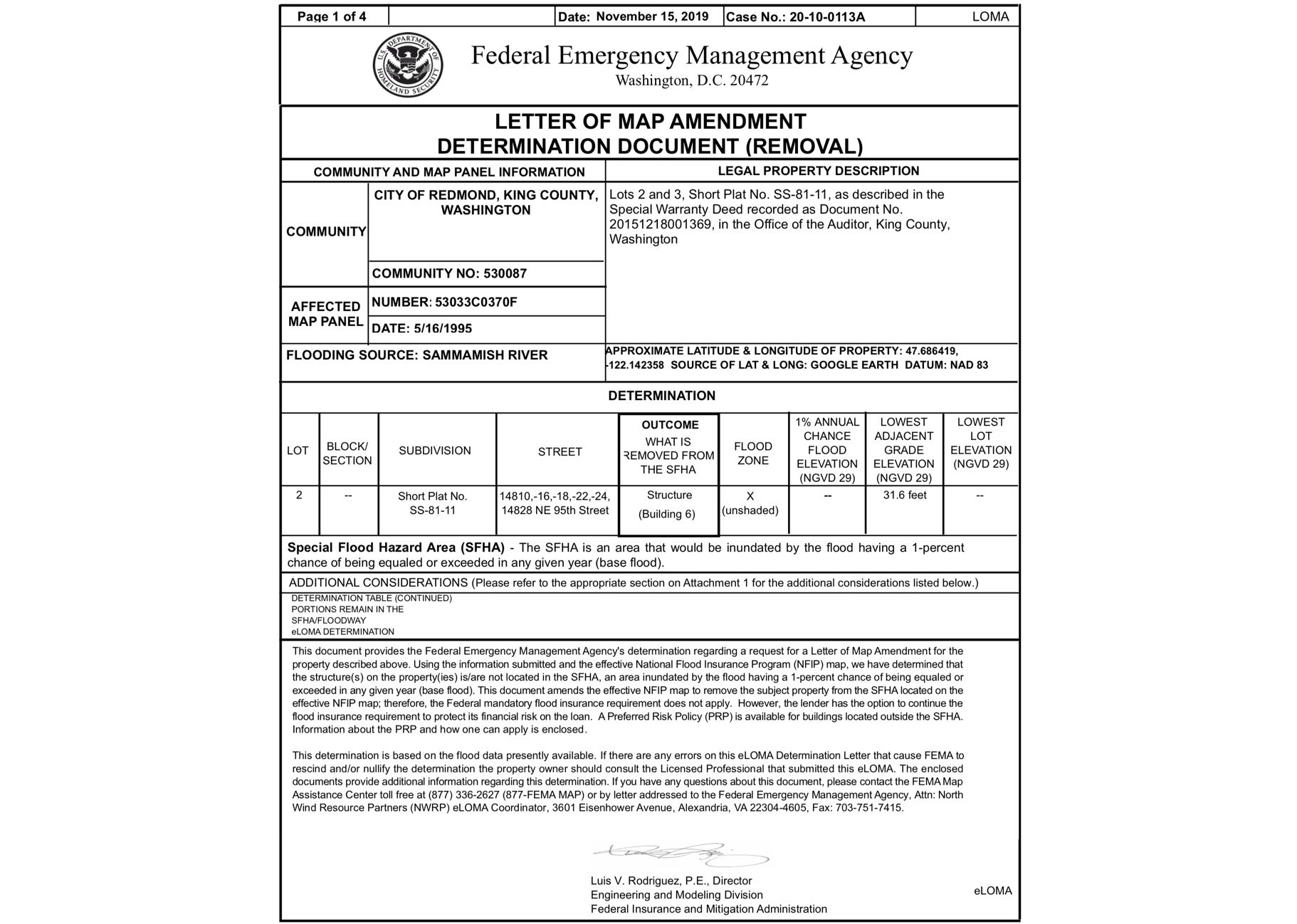 A Letter of Map Amendment (LOMA) is an official amendment to an effective National Flood Insurance Program (NFIP) map, which is issued as a letter to the homeowner after review and approval by FEMA. If issued, the LOMA letter can provide your insurance company proof that your property is at a lower risk of flooding than the original NFIP map indicates, which equates to a lower insurance premium for you.